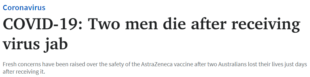 两名澳大利亚人在接受阿斯利康疫苗后仅几天就失去了生命,这让人们对该疫苗的安全性产生了新的担忧。
