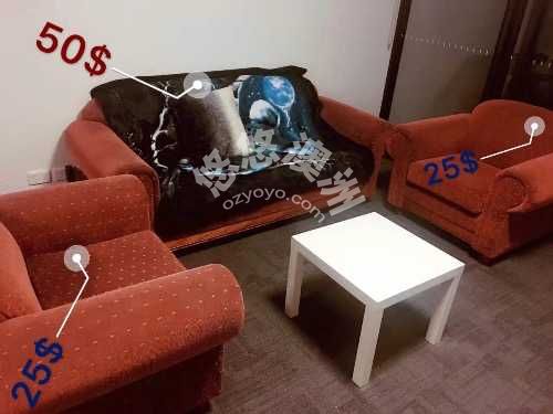 现出售完整沙发一套 一大两小 60刀一套city自取 也可以100刀一套包送 有兴趣快联系 0404771106