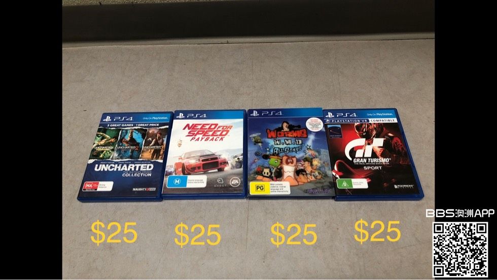PS4 游戏一律 $25 Uncharted collection $25 Need for speed payback $25 Worms W.M.D all stars $25 Gran turismo $25 原因:玩完了 地点:city