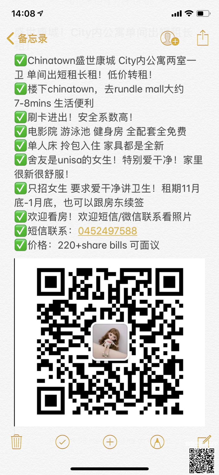chinatown盛世康成 单间 低价转租