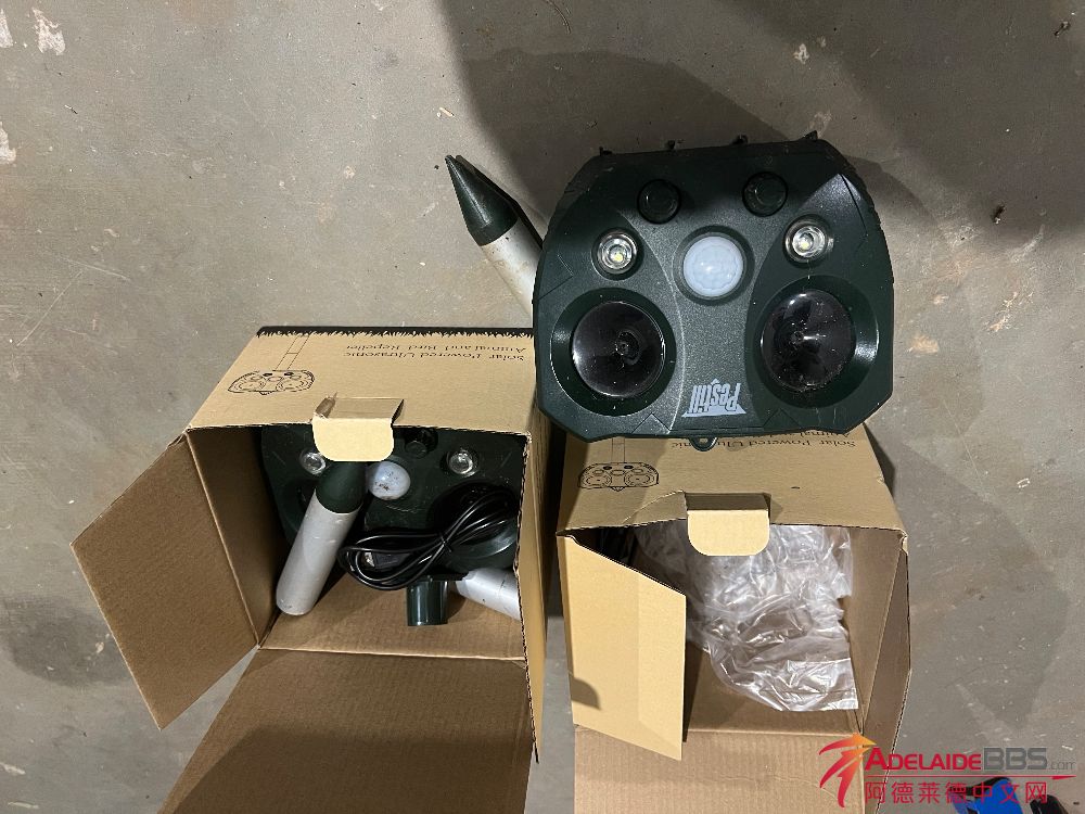 超声波太阳能驱鼠 驱鸟器 花园院子必备 两个几乎全新的太阳能超声波驱鼠,驱鸟神器,之前放在院子里,再也没有老鼠光顾,非常好使。可充电。 $50两个一起带走 0451325213 Hectorville 自取