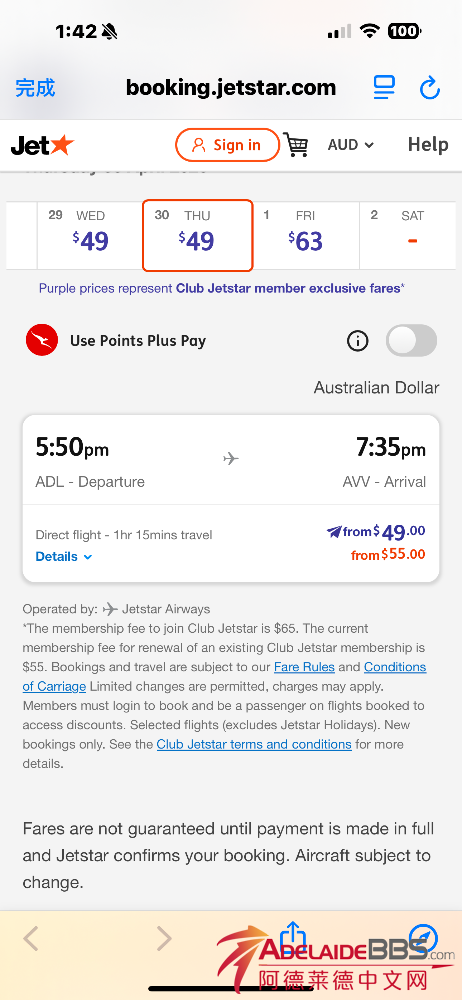出4.30号下午阿德去墨尔本阿瓦隆机场的单程机票 20刀出售,原价49 电话0424976787