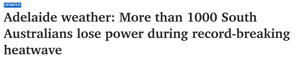 据1月27日报道,南澳上千名居民在阿德史上最热的夜晚遭遇停电,气温一度飙升至41℃。 阿德夜间最低气温达到34.2℃,创下前所未有的夜间高温纪录——此前最高夜间温度为2019年12月记录的33.6℃。与此同时,阿德莱 ...