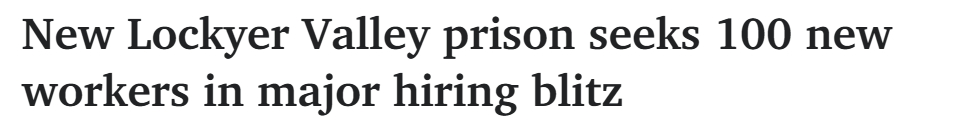 昆州Lockyer Valley新监狱招聘百名员工,最高年薪达$11.8万!