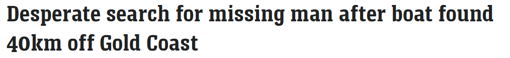 船主原定于周四晚间返回黄金海岸,但因逾期未归被报失踪,水上警方无法通过无线电与其取得联系。