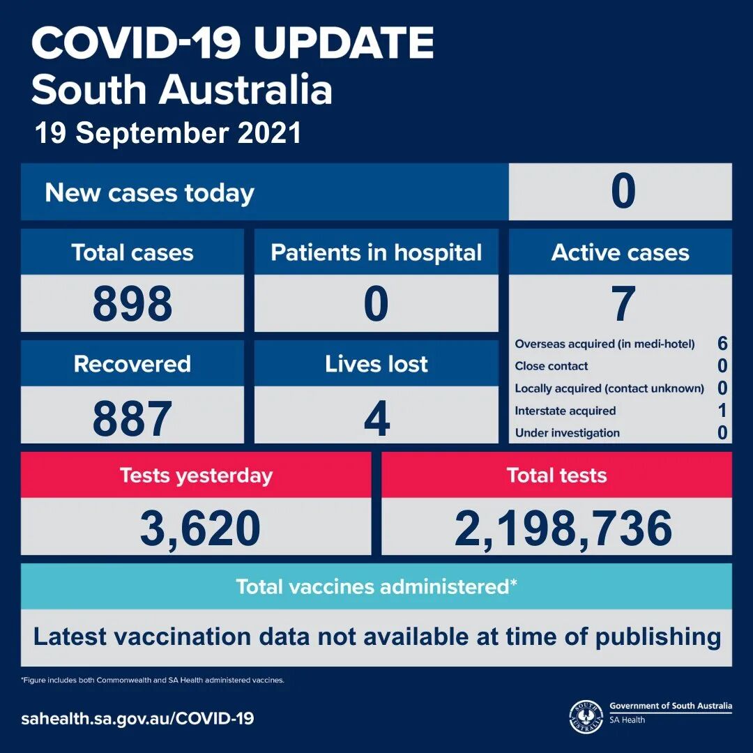 2021年9月19日,星期日,南澳新冠病例情况更新如下: