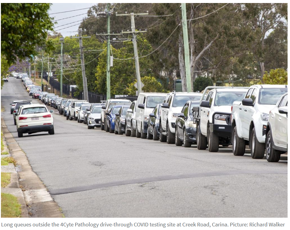 Peterson女士和她5岁的儿子都在Murrarie诊所排了近两个小时的队,并将在未来两周内回家隔离。