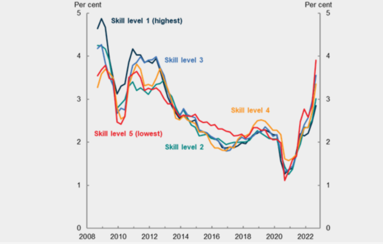 Chalmers博士说,低技能职业的工资增长受到了公平工作委员会提高最低工资的推动。