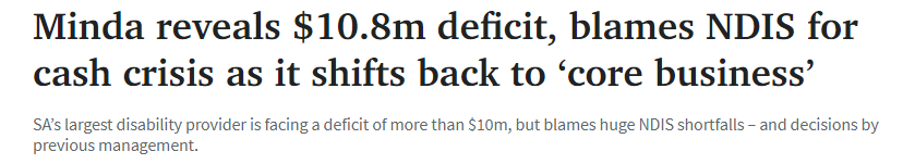 南澳最大的残疾人支持组织Minda正面临着超过1000万澳元的赤字,它指责NDIS的巨大缺口以及以前管理层的决定。