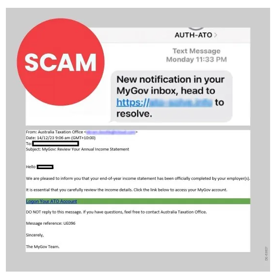 "这些骗子发送的myGov登录链接会将人们定向到假冒的澳大利亚税务局或myGov网站,这些网站与真实网站惊人地相似。这些链接通常会搭配一些误导性的短语,目的是诱使您点击这些链接。"
