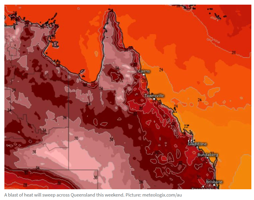 据悉,昆州正处于前所未有的热浪之中,布里斯班将打破三项纪录,预计周六的气温将攀升至36℃,而西南部地区最高气温预计将达到40℃。