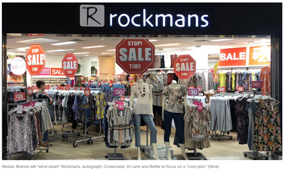 Mosiac Brands将逐步关闭Rockmans、Autograph、Crossroads、W Lane和BeMe,专注于其他五个核心品牌。