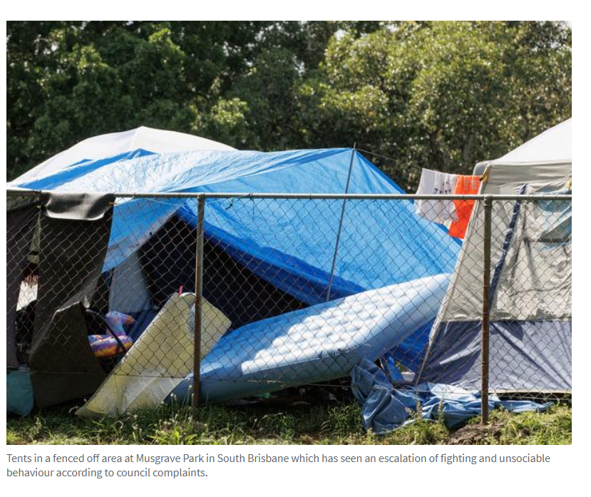 在过去一个月,Musgrave Park和Kurilpa Point Park的无家可归者营地中出现了多起伤人、纵火和破坏公物的指控。