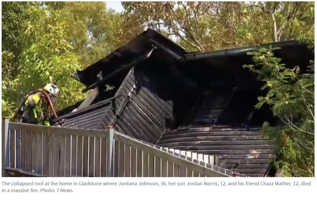 据《couriermail》10月16日报道,周三清晨,昆州Gladstone的Toolooa一处住宅发生特大火灾,36岁的Jordana Johnson与其12岁儿子Jordan Norris、以及儿子的好友12岁的Chazz Mather在火海中丧生。邻居透露曾听见孩童在屋顶坍塌前呼救,当时两名少年正在家中过夜。