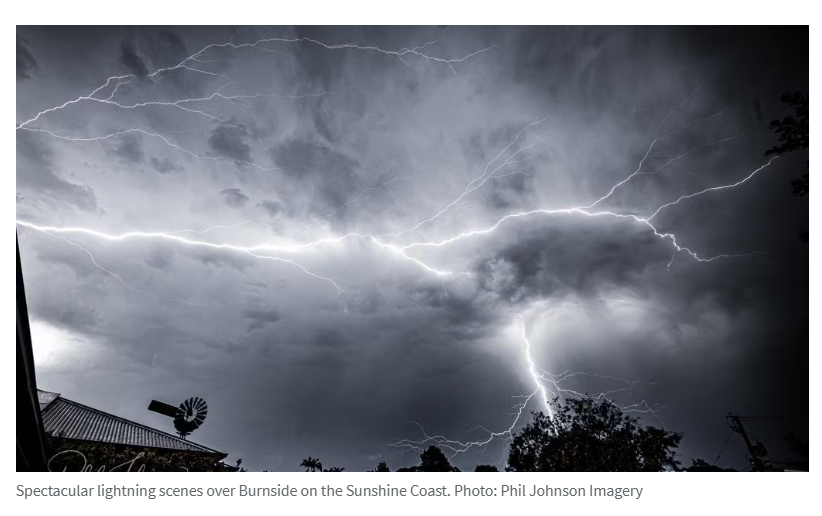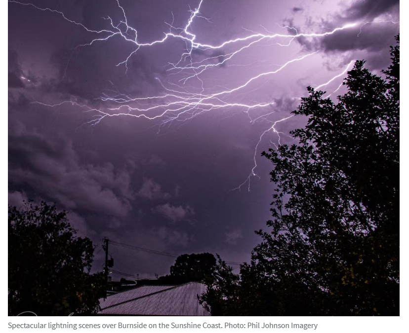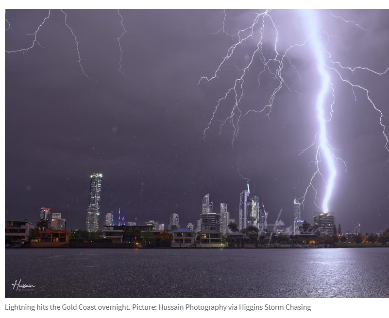 黄金海岸居民报告遭遇多次闪电袭击,部分闪电击中地面时"震感犹如地震"。Moreton Bay地区在周一下午风暴中受损最严重,此次又录得夜间最大降雨量,Wamuran(68毫米)、Laceys Creek(62毫米)、Dayboro(62毫米)和Elimbah(60毫米)记录最高值。周一阵风过后,目前仍有超过36,000户用户断电,当时峰值停电用户达16万户。
