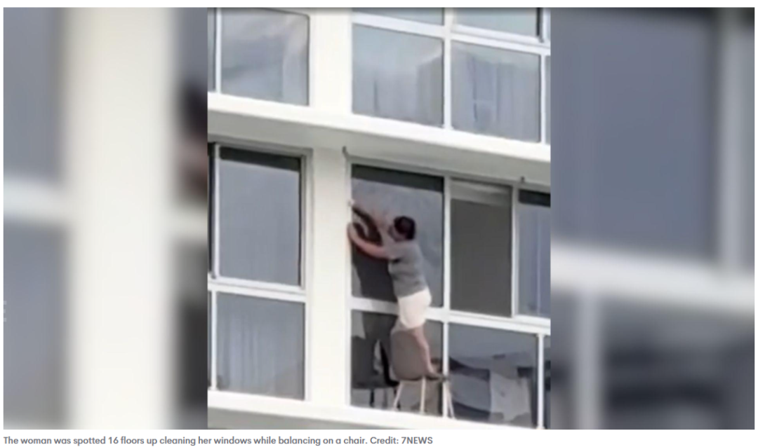 惊险一幕:黄金海岸女子16层高楼窗外擦玻璃,引安全热议!