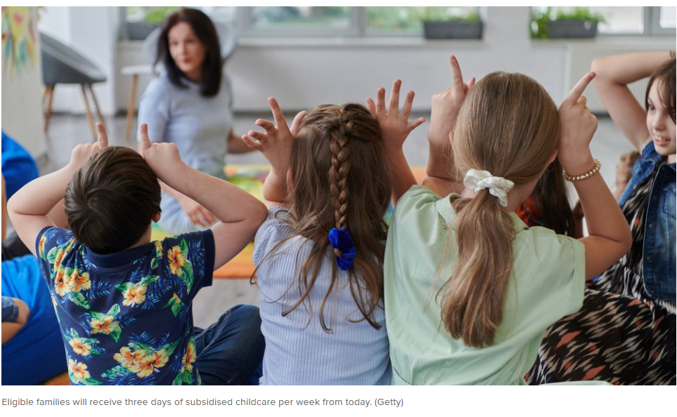 据《9news》1月5日报道,新的儿童保育规则从今日起正式生效,澳洲所有符合条件的家庭每周将至少获得三天补贴的儿童保育服务。