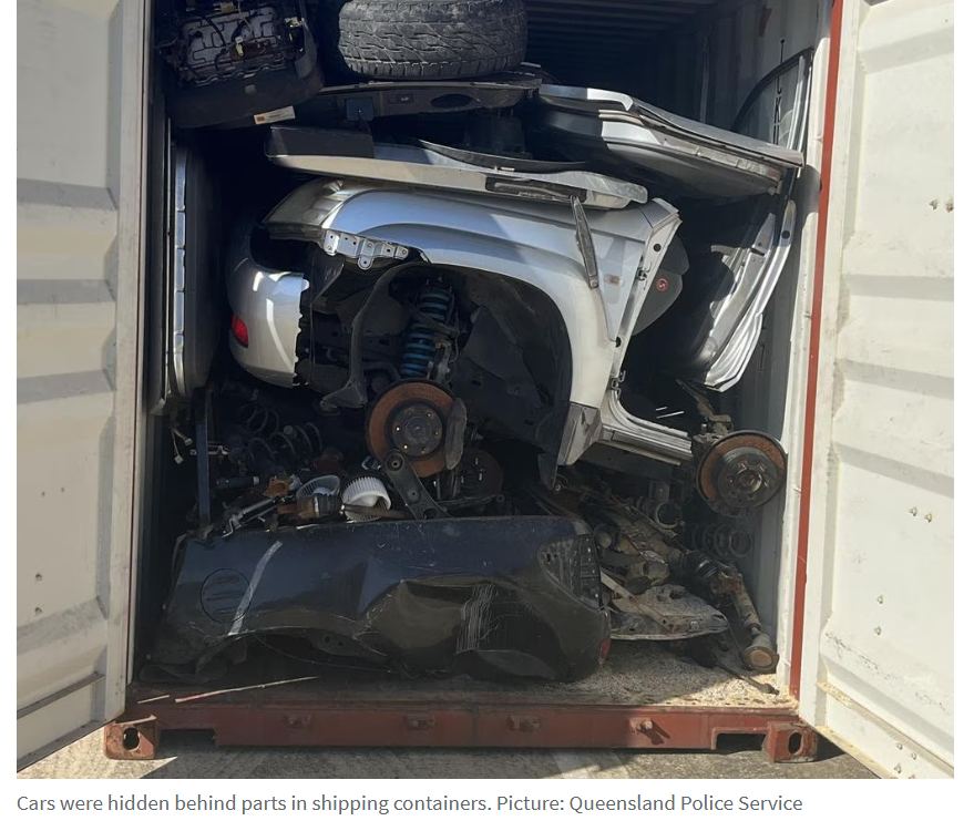 调查人员追踪到一辆被盗的LandCruisers于12月2日驶入位于Melbourne St, Rocklea的一处报废场。警方此前已在盗窃案高发的布里斯班南区部署了行动小组,警用直升机也追踪了该车辆。随后,警方在一个海运集装箱内发现了两辆LandCruisers,它们被隐藏于拆解的汽车零件之后。