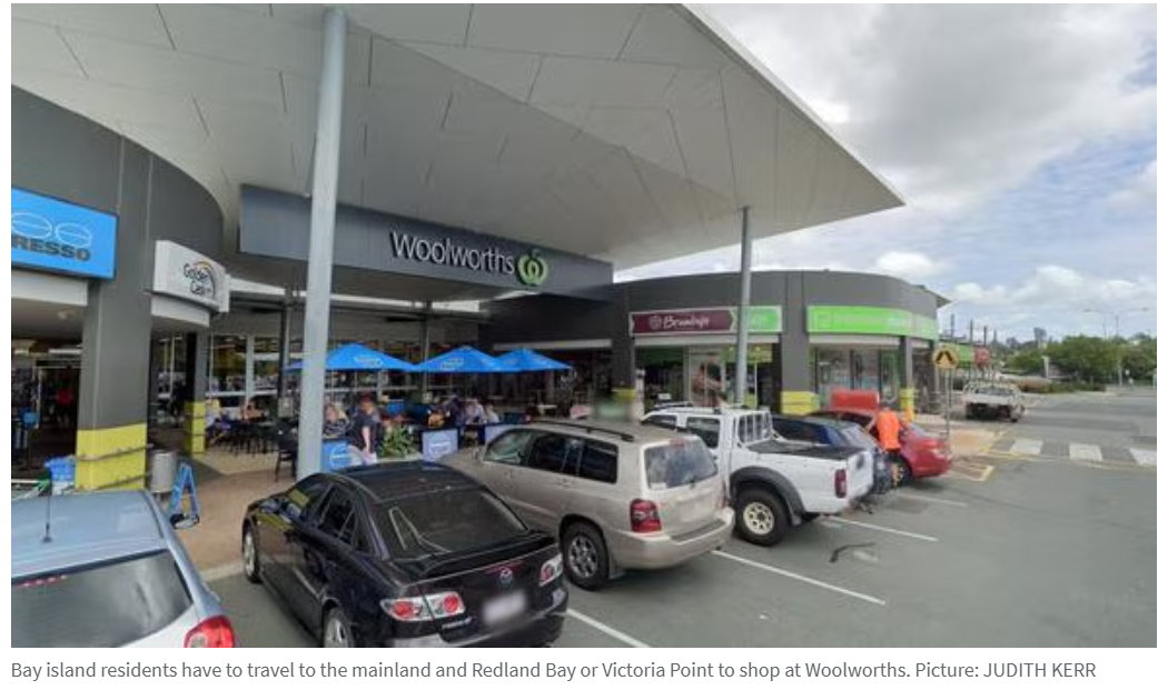 从Russell, Karragarra, Macleay和Lamb岛乘渡轮前往Redland Bay渡轮码头距离超过10公里,再行6公里才能抵达拥有最近Woolworths、Coles和Aldi超市的主要商业区。