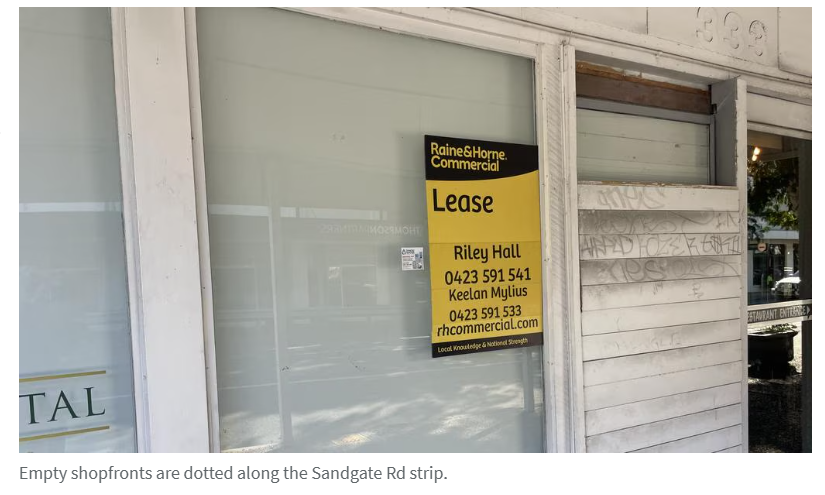 Mortimer同时指出,Sandgate Rd及周边街道长期存在停车难题,促使Albion Hotel数年前推行付费停车以通勤族占用车位。该街区现有多个商铺空置招租。除六七家餐饮场所外,这些百年历史建筑中还容纳两家发廊、数家财富咨询机构、干洗店、药房、宠物美容、自然疗法诊所及成人用品店。