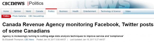总被称为土土的加拿大正变得越来越洋气。这不,连国税局也在与时俱进,知道翻看各种社交媒体、包括Facebook、Twitter、微信等等,来追查逃税了。 当然,对某些人来说,这种洋气可绝对不是一个好消息。 ...