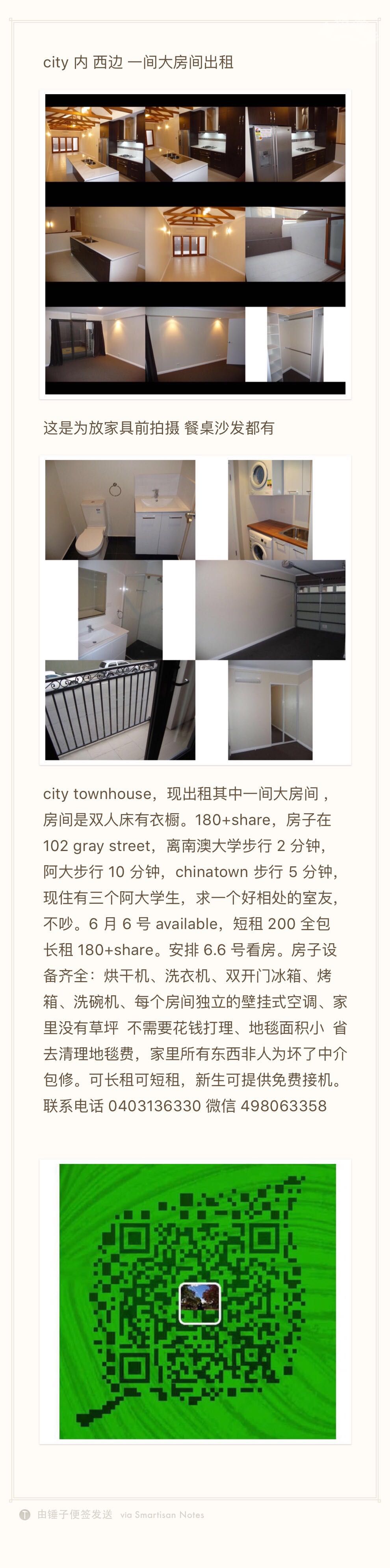 city townhouse,现出租其中一间大房间 ,房间是双人床有衣橱。180+share,房子在102 gray street,离南澳大学步行2分钟,阿大步行10分钟,chinatown步行5分钟,现住有三个阿大学生,求一个好相处的室友,不吵。6月6 ...