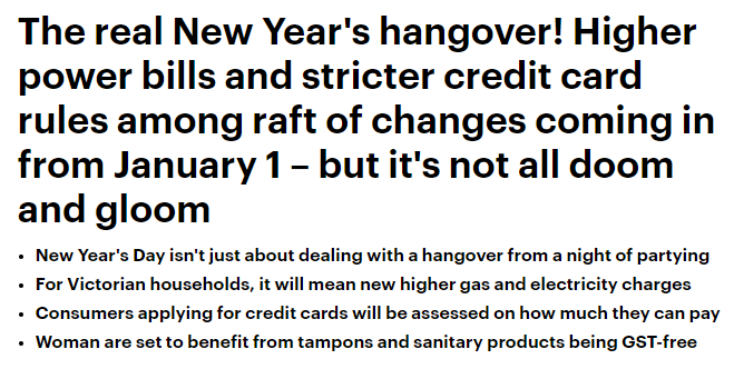 圣诞月就这么开始啦~ 这也意味着新年就在不远处呀! 原本澳洲的电力这些的能源就不便宜, 现在竟然还要涨??? 只能说有人欢喜有人忧啊...... 大家还是好好研究研究哪些跟自己比较有关系, 该好好表 ...