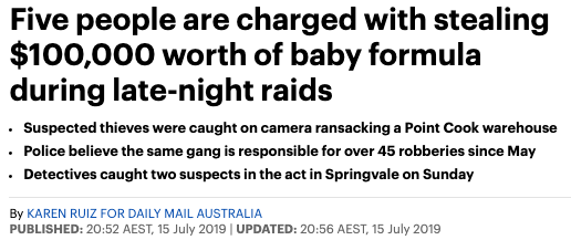 在澳洲,不少华人做代购店的生意。 店内囤积了大量的奶粉和保健品,但防盗措施不到位, 往往成为了窃贼的目标。 据报道,自5月以来,该团伙已在Point Cook、Abbotsford、Footscray、Presto ...