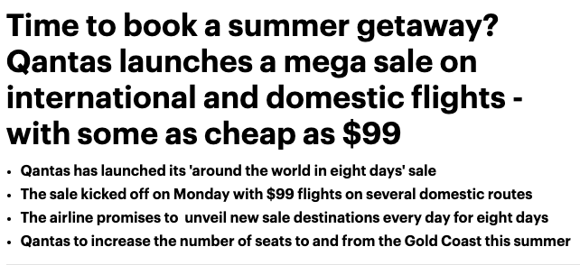 澳航Qantas一波机票促销活动来袭! 他在一份声明中说,未来一周,客户每天都可以期待一个新的销售区域,覆盖我们飞往的每一个国际市场。 “我们知道黄金海岸是墨尔本和悉尼度假者的热门目的地, ...