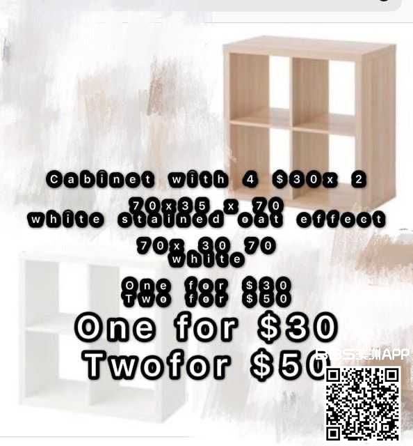 宜家四格櫃$30*2, 2 for $50 自動中藥壺$40 吐司機$20 壽司模具$20 鬆餅機$100 豆漿機$100 食物處理機$30 吐司機$10 電飯鍋$10 電子體重機$10 直立鏡子$30 鍋碗餐具$2-10 歡迎詢問