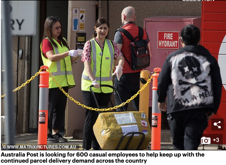 随着越来越多的人在新冠病毒危机期间转向网上购物,澳大利亚邮政正在寻找600名临时工来帮助满足包裹递送的需求。 该公司表示,自复活节周末以来,每天大约有200万个包裹被寄出,比去年同期增长了90%。 然而, ...