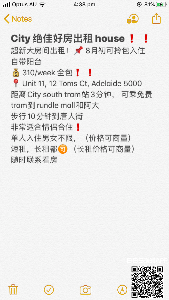 City 绝佳好房出租 house‼ 超新大房出租, 8月初可拎包入住 自带阳台 $💰310/ week 全包 地址:unit 11, 12 Toms Ct, ADELAIDE 5000 距离City south tram 站3分钟, 可乘免费tram到rundle mall ...