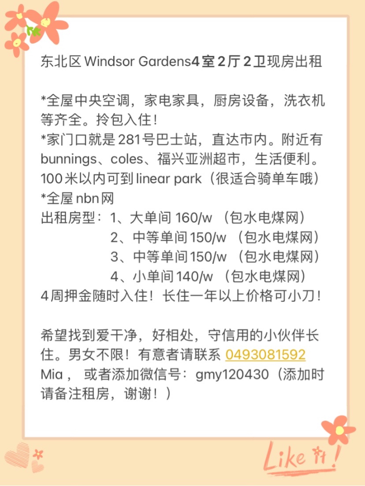 东北区房屋出租,寻找爱干净好相处的室友。