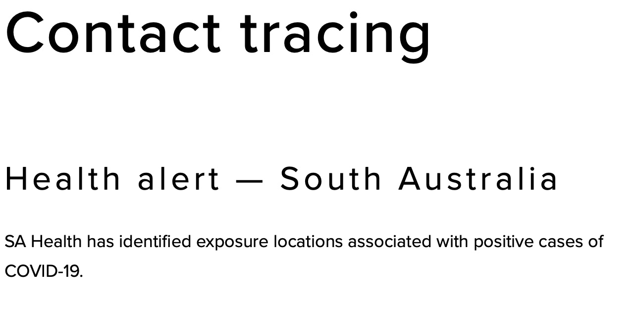 南澳卫生部已经确定了与COVID-19阳性病例有关的疫情暴露场所。 并填写表格 通知南澳州卫生局你曾在此地点。 Golden Grove - OPSM, Golden Grove Village 购物中心;7月17日星期六 - 下午3时至4时45分 Hindmarsh ...