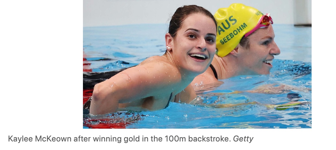 Kaylee McKeown在100米仰泳决赛中抛开丧父之痛,赢得了她的第一枚奥运金牌,也是澳大利亚三天来在泳池中获得的第三枚金牌。 她的母亲说。"她的爸爸会感到非常自豪。" 第四次参加奥运会的澳大利亚 Emily ...