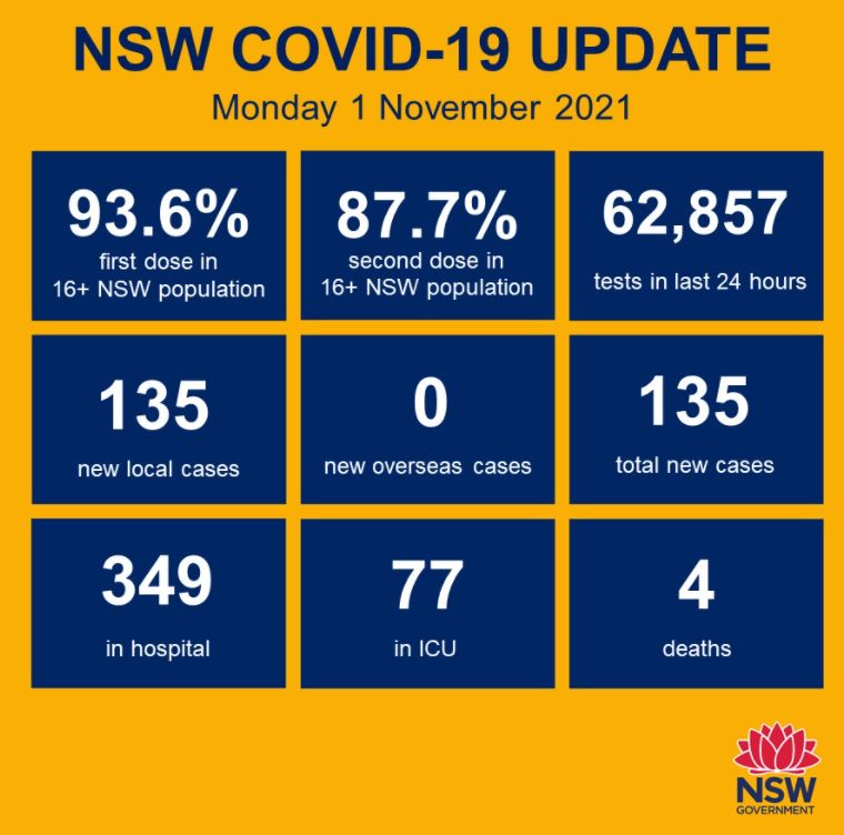 新州录得135例本土新增确诊病例!4例死亡!