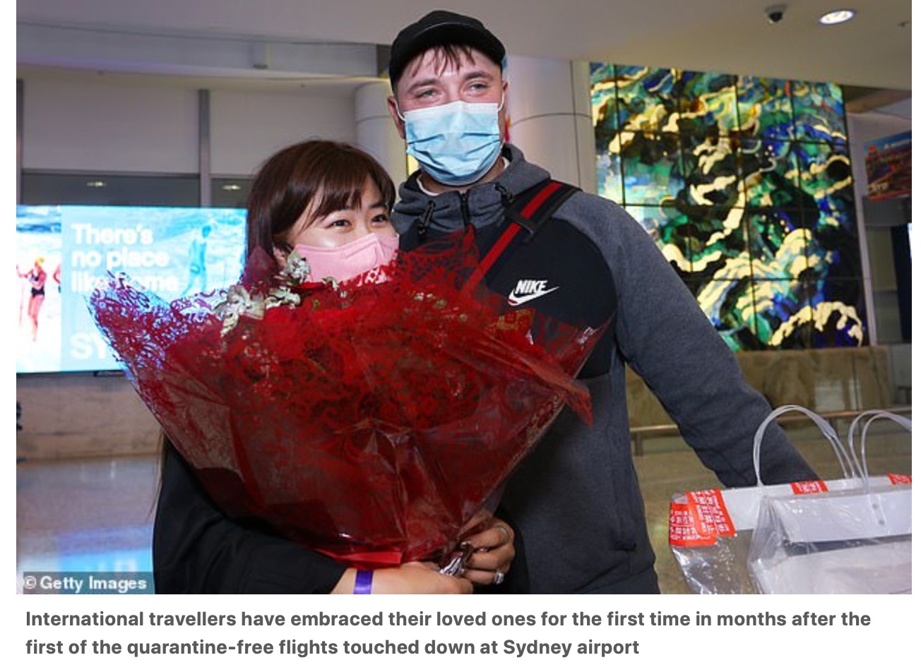 在第一架无需隔离的国际航班降落在悉尼机场后,国际旅客在近两年来首次与他们的亲人相拥。 Heather补充说:'我的两个儿子都在上大学,所以我必须获得三个月的旅行豁免权,这一点得到了通过。” Heather还解 ...