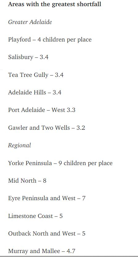 维多利亚大学Mitchell研究所的一份报告发现,超过80万的南澳人居住在儿童保育服务严重短缺的地区。 图文来源:The Advertiser 原文链接: