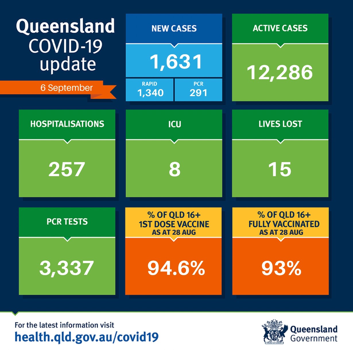 在过去24小时里,昆州新增1631例,15人死亡。 其中PCR检测291例,快速检测1340例。 目前全州活跃病例为12286例。 共有257人因covid住院,8人住在重症监护室。 全州16岁以上人群两针接种率为93%。 图文来源 ...