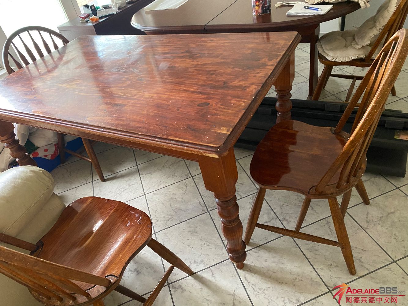 实木餐桌+4把实木 椅子 这套在 heavy normal 买的,当时花了$2600 白菜价$100 电话:0410787688 Address: mooringe ave north plympton