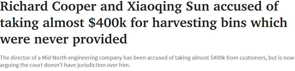 南澳一家中北地区工程公司老板被指控从客户那里收取近40万澳元,但从未提供客户订购的产品。该事件已交由法院处理。 2020年6月16日,这对夫妇被指控向一家牧业公司报价98,846澳元,购 ...