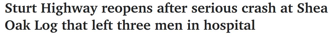 警方正在调查一起发生在Shea Oak Log的严重车祸,该地位于阿德东北约50公里处,靠近Barossa。 任何知情者请致电Crime Stoppers热线1800 333 000。 与此同时,南部的Southern Expressway因一起多车事故 ...