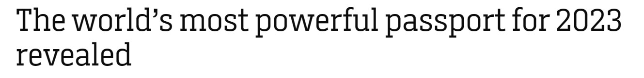 2023年全球护照排名的争夺变得更加有趣了。 Henley & Partners在最新发布的报告中指出,在这项已有18年历史的排名中,旅客能够免签前往的目的地平均数量几乎翻了一番,从2006年的58个增加到109个。 ...