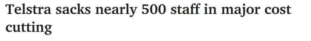 近日,Telstra裁减近500个职位,这是该公司在首席执行官Vicki Brady的领导下进行的第一轮大规模裁员,裁员将在其企业部门进行。 "若变革继续推进,部分员工将离开公司,并将设立新职位,工作岗位净 ...