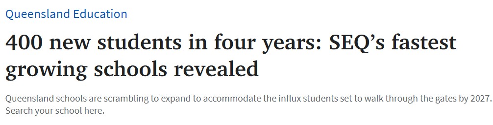 昆州的学校正争相扩建,以容纳将于2027年入学的大批学生。 昆州教育部发言人表示,州政府已承诺为Griffin、Indooroopilly和Pallara state school的大规模扩建提供资金,以确保这些学校有足够的容量来适应增 ...