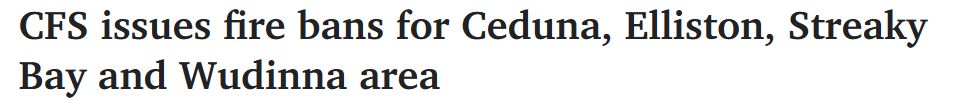 南澳气象局预测,本周末气温将飙升,本季度的第一批禁火令迫在眉睫。 南澳消防局发布了本季度的首个禁火令,禁火区域包括:Ceduna、Elliston、Streaky Bay和Wudinna。 阿德消防和危险品管理局副局长Brento ...