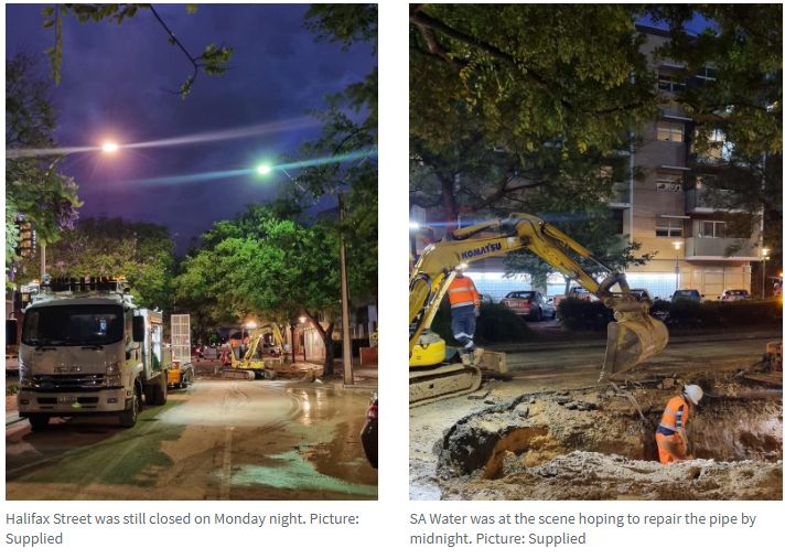 周一晚上,Halifax Street因一栋公寓楼下的总水管爆裂而被迫关闭。 南澳紧急服务部门也被要求帮助疏通排水沟,以帮助水下沉。 这是阿德CBD两天内发生的第二次洪水。 图文来源:The Advertiser原文链接
