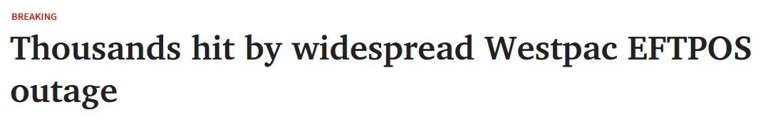 • Westpac EFTPOS系统大范围中断,数千商户交易受阻!
