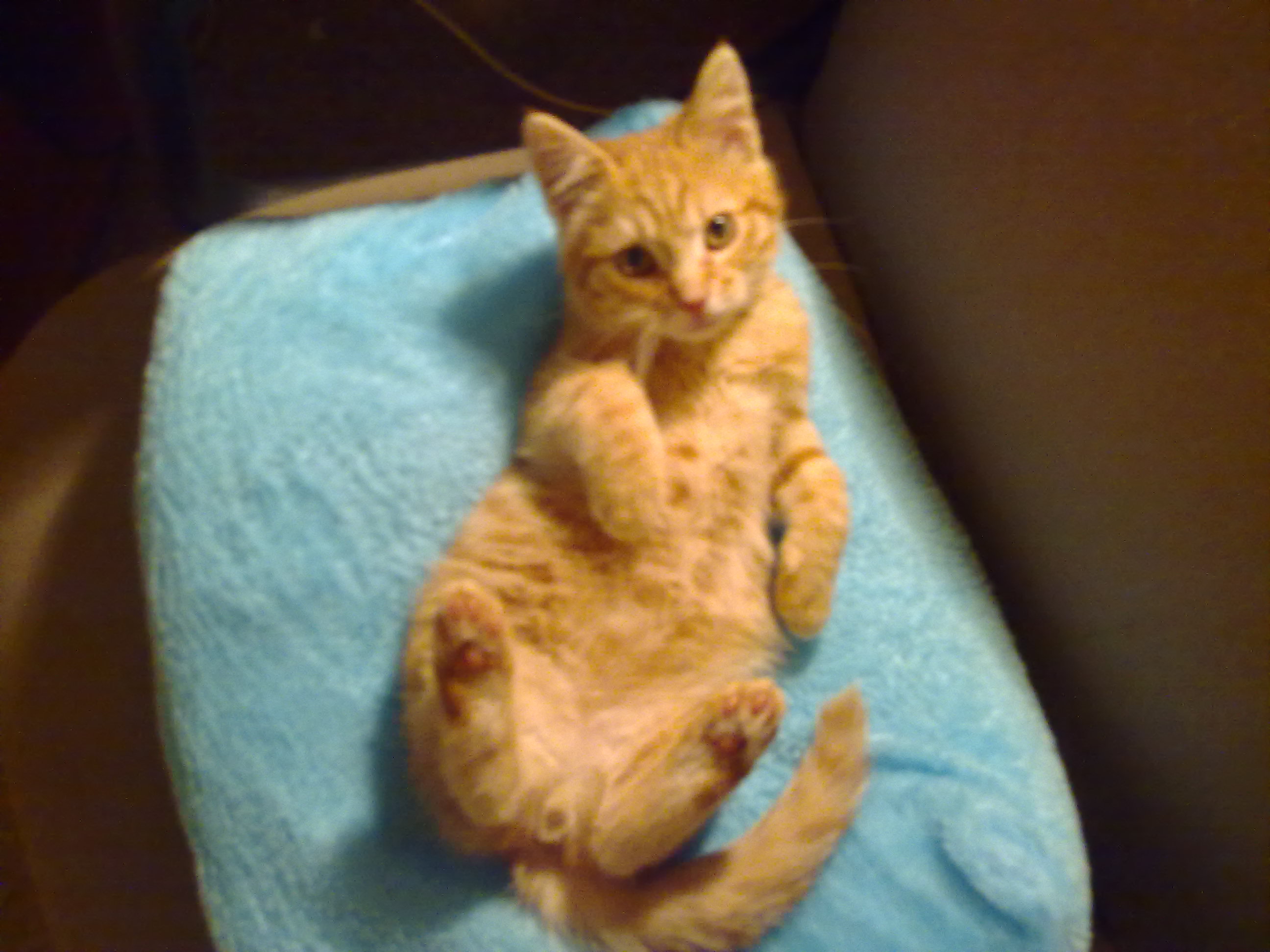 a ginger male kitten, 8个月大,很活泼好动,喜欢吃肉,很少吃鱼