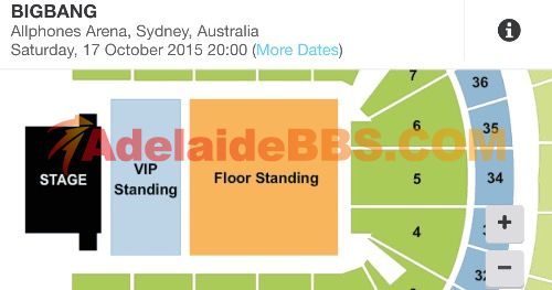 转售一张10.17bigbang悉尼演唱会的门票 位置:图中黄的的floor standing 低价低价低价出售 联系微信 pindropp谢谢